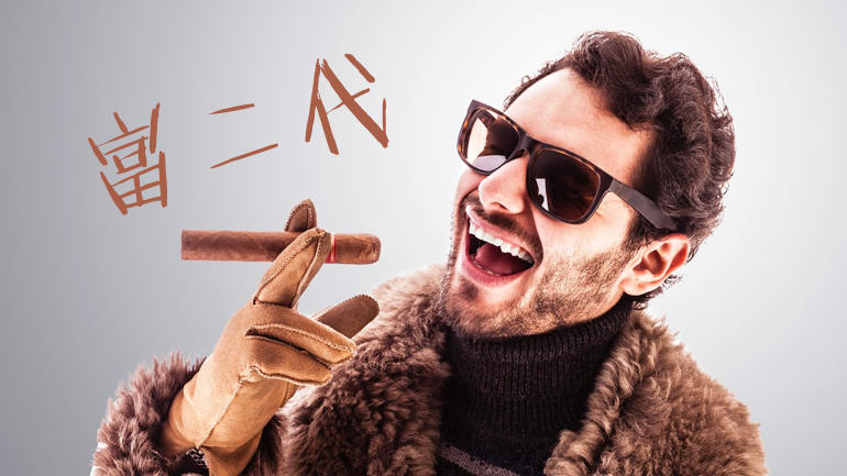 With the development of the society, new words in a certain language were born. So it is with Chinese. Among them is "富二代 (fù èr dài)". So, what does it mean? In this phrase, the Chinese character "富" means "rich". Grammatically, it is used as an adjective here. "二" means "second" or "two" and "代" means "generation". In English, "富二代" can be translated as "Rich 2G", the second generation that are very wealthy.