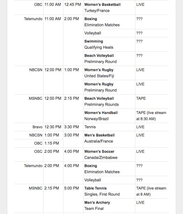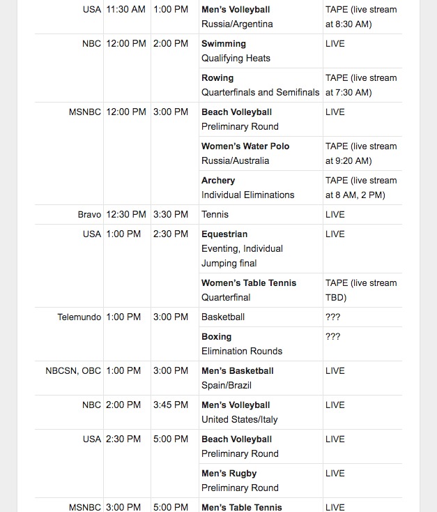 Countdown to the 2016 Rio Olympics – it's just 9 days away. Already excited for the big events? Take a look at the TV schedule first (all times Eastern).